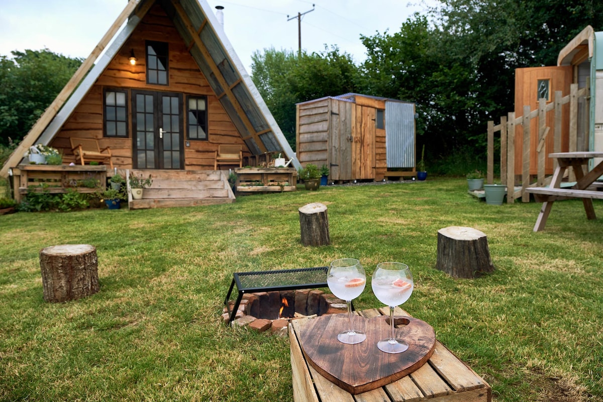 The Gambo is a traditional Shepherd's Hut with all the modern comforts you need for a relaxing break. It has a king-size bed, a fitted kitchen, full size fridge, wood-burning stove and bathroom. There is a 2-seater snuggler settee to relax and enjoy the spectacular view of the countryside and nearby coastline. Outside is a firepit, table, chairs and a Jacuzzi hot tub. Star gaze the unpolluted night sky. Relax and rejuvinate by booking a session in the sauna and cold splash pool!