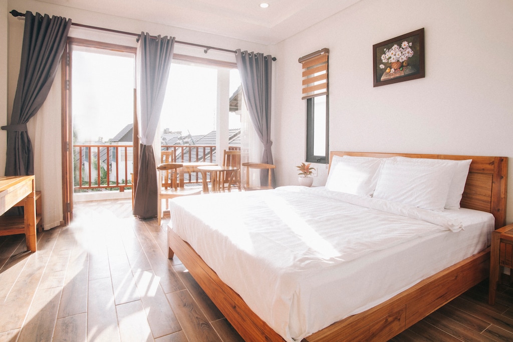 Phòng có một giường đôi cỡ king đẹp và rộng rãi.