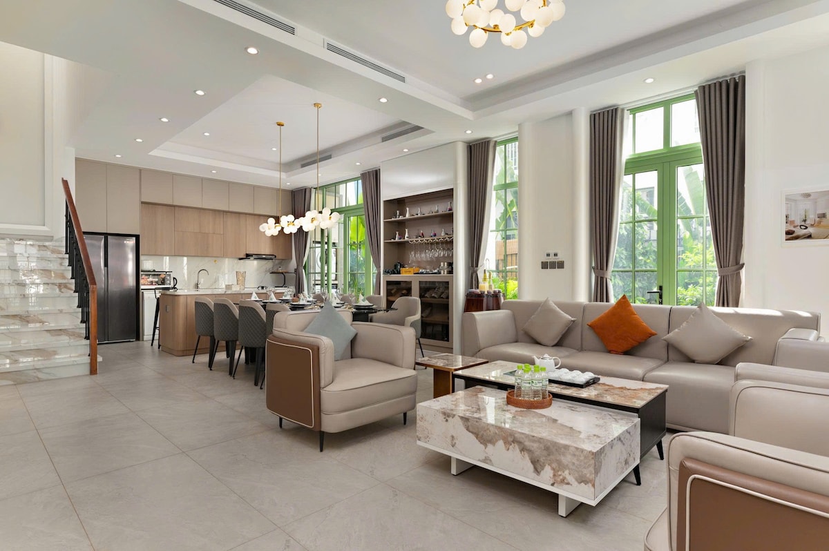 The villa is located in the luxurious Bãi Khem resort 🏖️, featuring 4 spacious bedrooms and modern amenities in the Modern Minimalist style. The minimalist and refined design uses natural materials like wood and stone, creating a peaceful atmosphere. Just 500 meters from the beach, it provides easy access to white sand beach and crystal-clear waters 🌊, blending modern conveniences with a tranquil lifestyle.