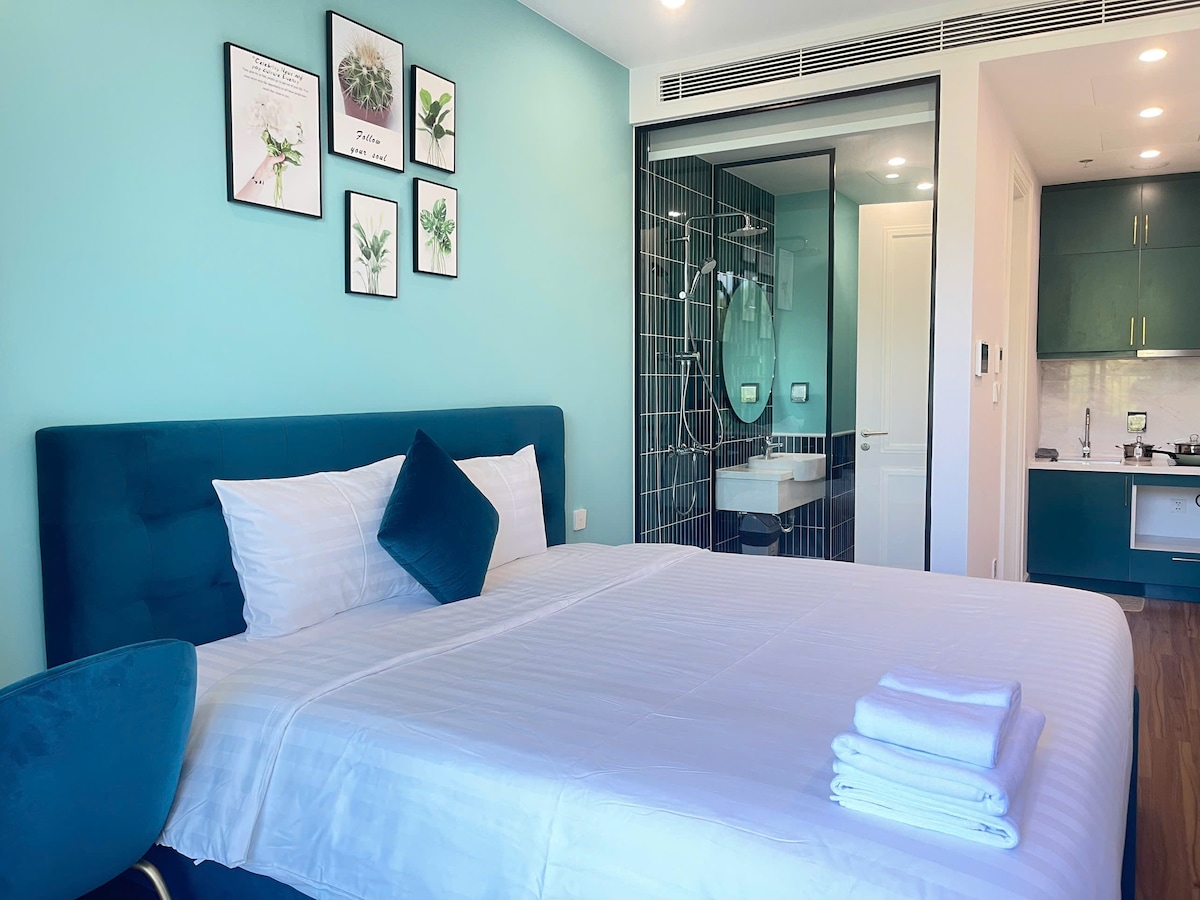 - nằm trong thị trấn hoàng hôn sôi động, gần cáp treo Hòn Thơm - một giường cỡ King (2m x 2m), có bếp, đầy đủ dụng cụ nấu ăn, máy giặt - free gym & hồ bơi tầng thượng - ban công ngắm kiss bridge, tầm nhìn ra bãi biển, ngắm hoàng hôn và pháo hoa tuyệt đẹp - 3 phút đi bộ tới bãi biển, chợ đêm vui fest, beer craft - Phòng nằm trong căn hộ dạng dual key – chỉ chung cửa chính ra vào, còn bên trong là phòng riêng biệt, có cửa & khóa riêng, đảm bảo riêng tư tuyệt đối.