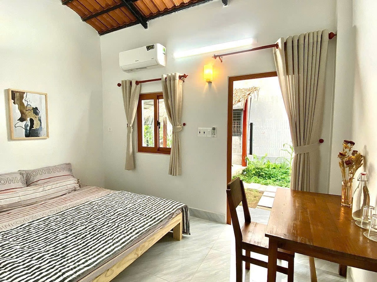 -It is designed very unique and built on an area of over 500m2; has a spacious garden with fruits vegetables and flowers, surrounded by fences and guard gates and watchman to keep the house safety. - Fully equipped such as: Air conditioner, Washing machine, Refrigerator and kitchen tools, water purifier, shampoo,.. - There are many interesting activities such as: row boats; catch fish and cook in the rice fields; collect duck eggs and feed them and the best place to check-in. All is free