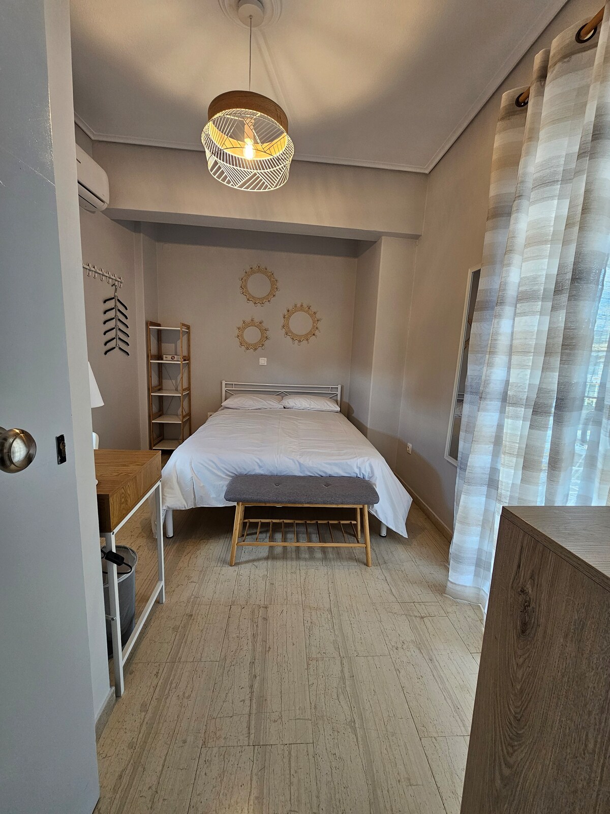 A quiet and chic, 2-room-apartment,of 66 square meters, fully equipped, VDSL internet 50Mbps, host 1 to 5 persons. Access by foot to all major archaeological sites, two blocks from Monastiraki metro station and in the commercial center of the city.