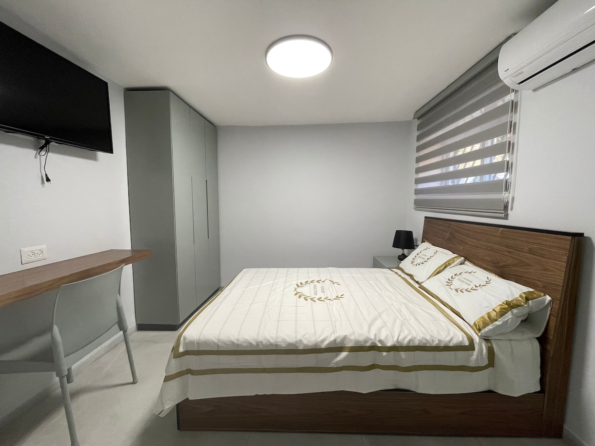 A sought-after studio in the heart of Jerusalem, on the 6th floor with an elevator, directly across from Mahane Yehuda Market. Cleverly divided into two spaces, it features a cozy living area, a fully equipped kitchen with a dining corner, and a comfy double bed. Thoughtfully designed, it balances style and function perfectly. Enjoy the lively atmosphere, easy access to public transportation, and all the city's top attractions just steps from your door. Perfect for a memorable stay in Jerusalem!