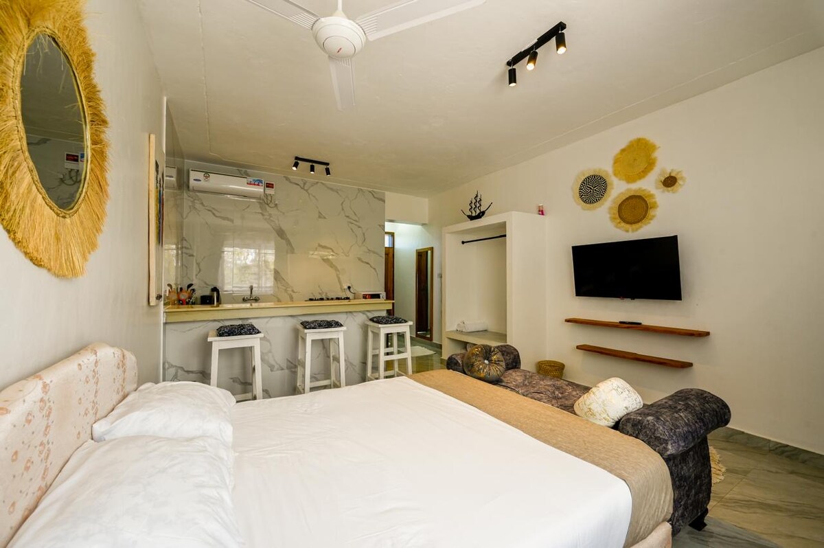 Poczuj się jak w domu w naszym przytulnym studio z afrykańską duszą. Zrelaksuj się wśród zieleni ogrodu i przy basenie, a do rajskiej plaży dojdziesz w kilka minut. Oferujemy do wynajęcia apartament o powierzchni ok 100 m, z dwoma wygodnymi sypialniami z łazienkami, szybki Internet, spokój i bezpieczeństwo. Na życzenie (za dodatkową opłatą): pyszne śniadania lub obiady, transfer z lotniska, lokalne wycieczki. Jesteśmy tu, by zadbać o Twój komfort – z sercem i uśmiechem. Zapraszamy:)