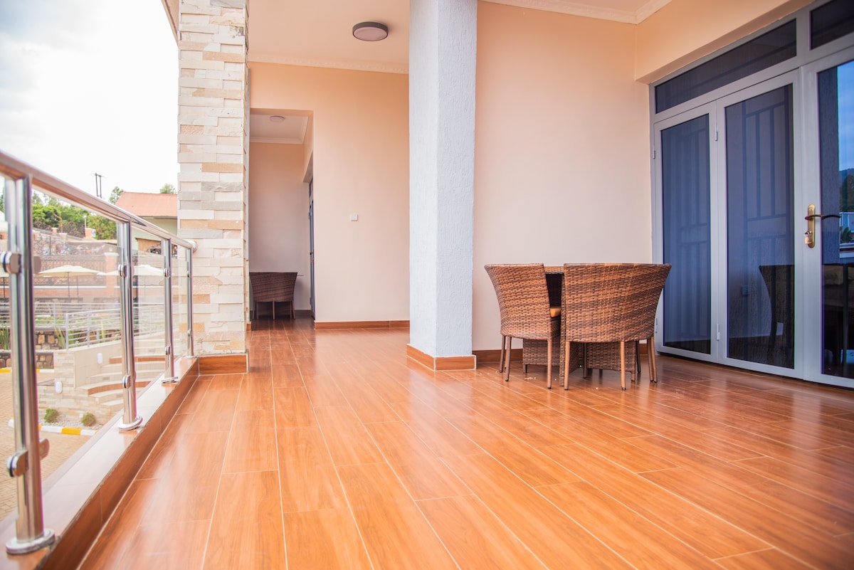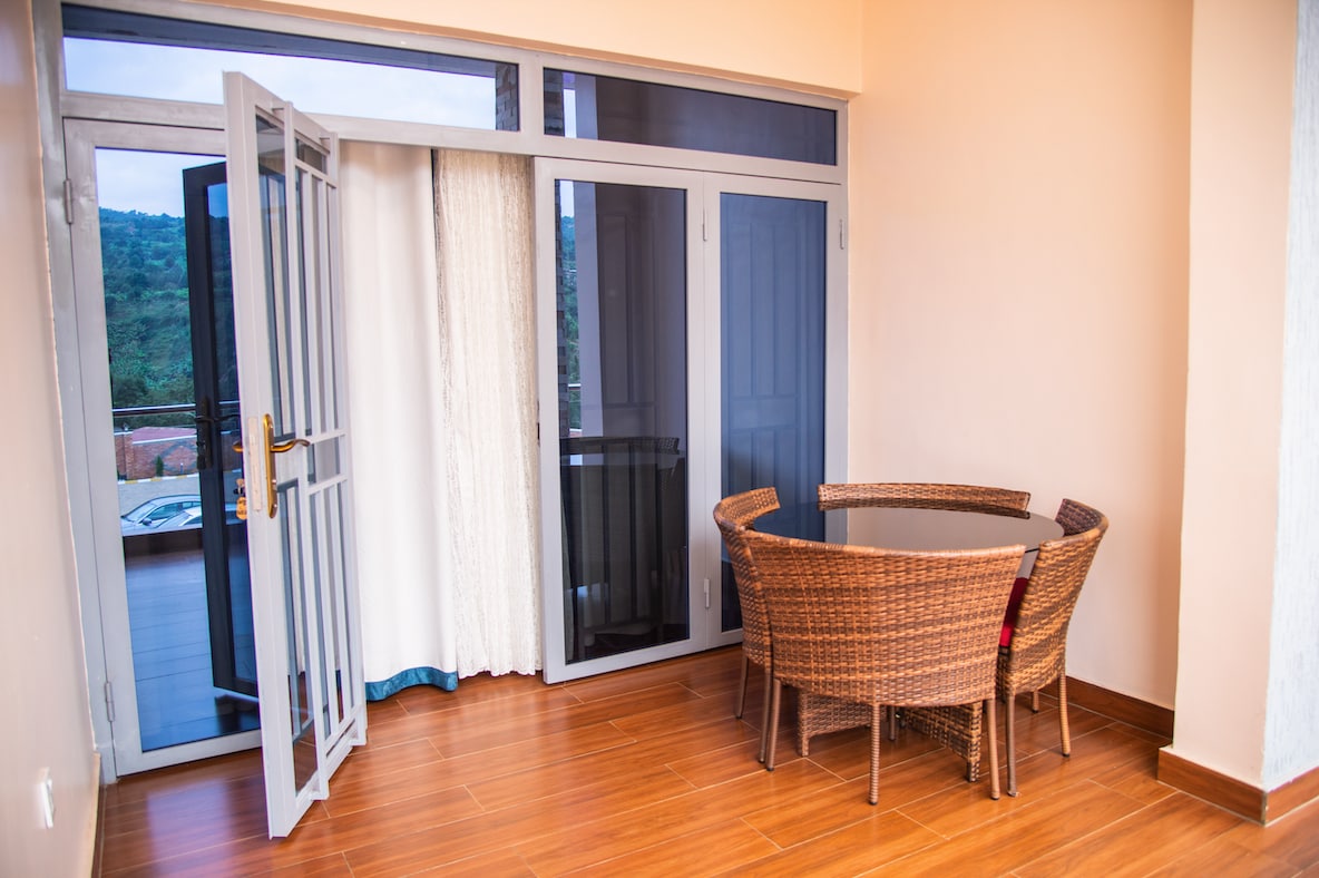 Your Rwandan Sanctuary Step into your haven of tranquility.Our fully-equipped guest rooms provide the perfect sanctuary after a thrilling day exploring bustling markets, encountering Rwanda's captivating wildlife, or scaling its majestic peaks. Curl up in your plush seating area and lose yourself in the captivating mountain views.Craft a culinary masterpiece in your private kitchen, enjoy a steaming cup of Rwandan coffee brewed to perfection. Stays above 3 nights and enjoy free airport pick up!