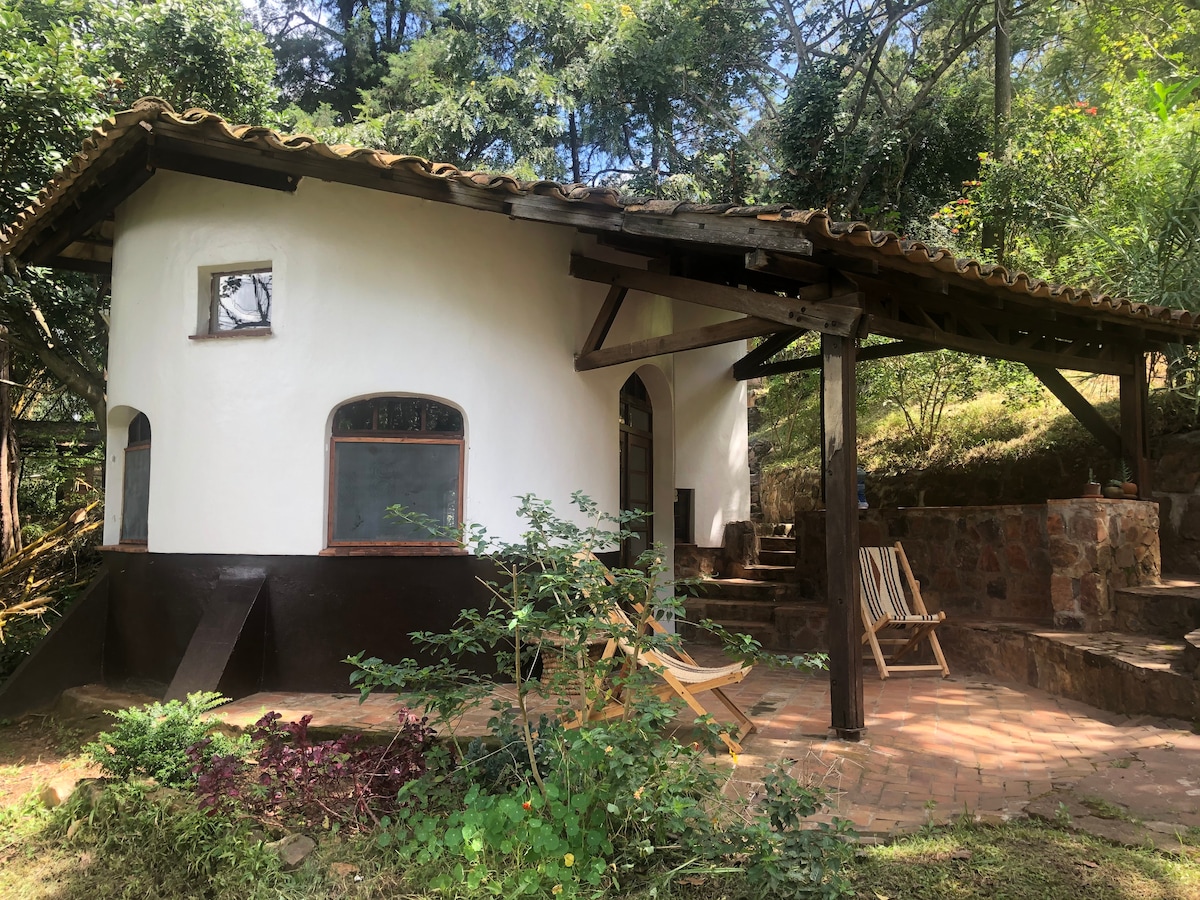 Lovely private cosy Tiny House with a living room, a double bed at the mezzanine, a bath room, a separate toilet, a fridge (the kitchen is part of the main house at 30 meters up with a 24h access). Large and lovely private garden located in a lush green environment with a relaxing terrace. This house is very close to the downtown within walking distance or 2' to 4' by motorbike taxi (main hotels, bank, supermarket, etc.). It's close to the President's house, a very quiet and safe area.