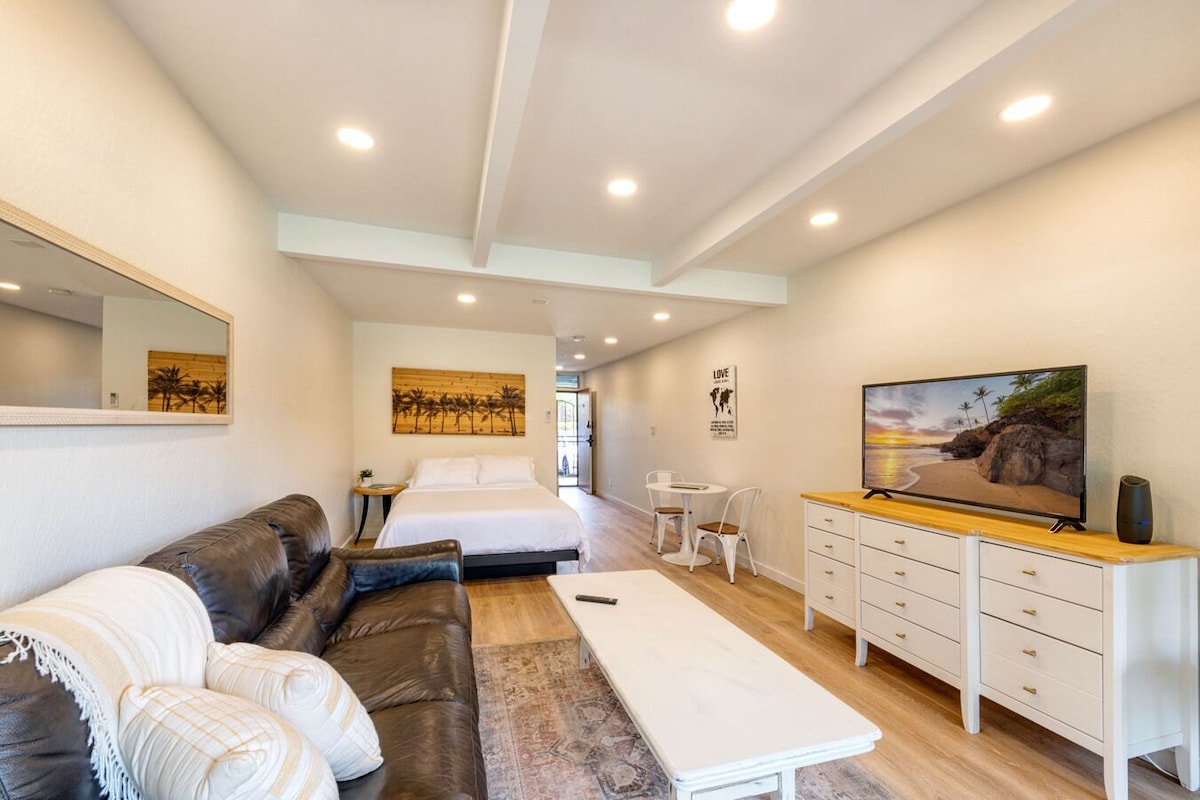 Experience a tropical retreat in our newly renovated studio condo, infused with Hawaiian flair and located in a peaceful part of the complex. Just across the street from a sandy beach and ancient Hawaiian fishpond, it’s perfect for turtle spotting and enjoying stunning sunsets. Guests can relax with amenities such as a pool, hot tub, BBQ, and tennis court.