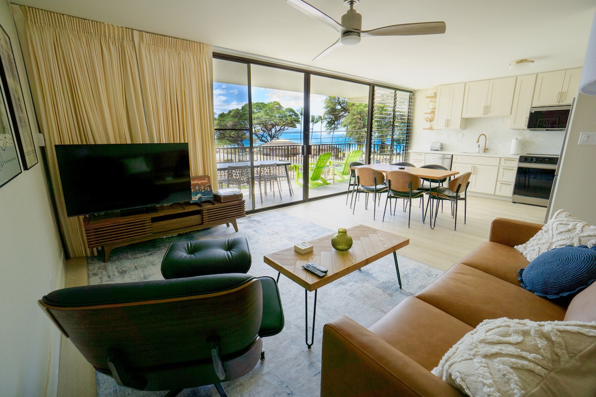 You'll love this stylish newly renovated condo with stunning ocean view. Enjoy easy walks to everything you desire for the perfect Maui vacation. This truly is the best holiday location on the island. You'll love the neighborhood, the shopping, the beaches, 3 pools, sunsets, restaurants, cafes, bars, turtles & whales! You'll be staying directly opposite the famous Charley Young beach! In the cutest little beach town on island Complementary parking