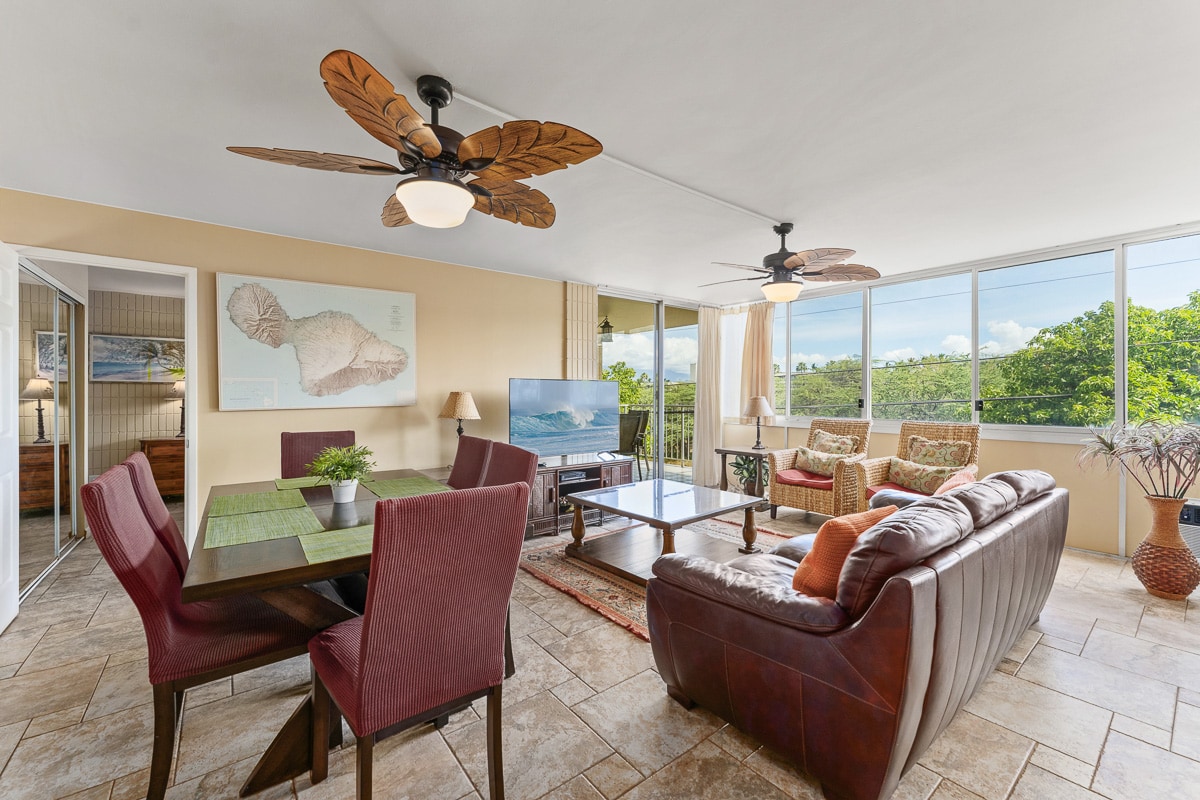 Nestled steps from stunning sunsets and moonrises, this 778 sq ft partial ocean view unit is an ideal island getaway. Revel in its bright ambiance and spacious kitchen. Unwind on the private lanai, overlooking the pool or savor views of waves and playful whales off Maui's coast. Perfectly situated across from Kam III beach, this family-friendly condo is your gateway to a memorable Maui experience.