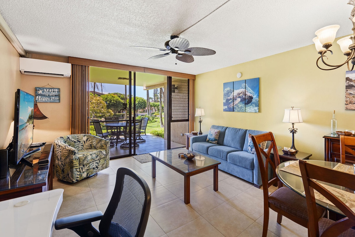 Aloha from Kihei! Just steps from one of Maui’s best beaches, this spacious condo is perfect for families or groups. Walk to shops, restaurants, and sunsets. Unwind with resort-style amenities including pools, pickleball, hot tub, and BBQ grills. Your private lanai offers peaceful garden views, and the fully stocked kitchen and beach gear make island life easy. Sleeps 6 comfortably. Stay relaxed, recharged, and connected in the heart of South Maui.