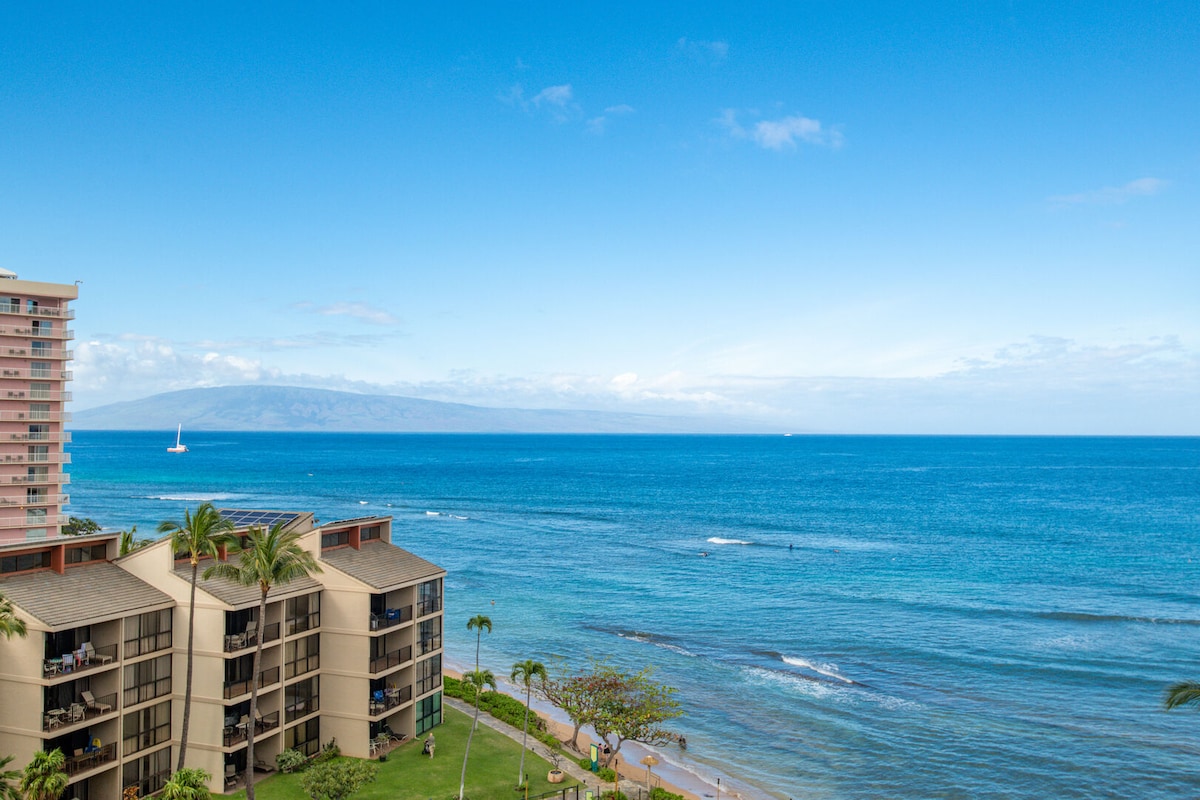 Relax and unwind as you enjoy stunning ocean views from your private lanai, just steps from the ocean at Sugar Beach Resort. This upgraded 2nd-floor oceanfront condo sits on the shores of Maui's Sugar Beach in Kihei. Watch the Kihei Canoe Club paddle their outriggers on the calm morning waters. You're so close to the ocean you'll hear the waves. Come visit and make amazing Maui memories. Aloha. *NOTE: Pool is closed for 1-2 weeks for annual maintenance beginning the 2nd Monday in September.