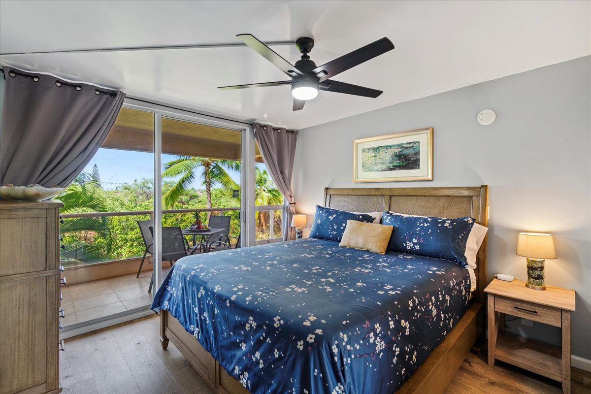 Come stay at our recently updated condo in South Kihei. The unit is known for the desirable, ground floor access. Take in the tropical garden and pool view from this 2 bed, 1 bath unit with split AC. The King-size bed with blackout drapes ensures a restful sleep, and a pullout Queen sofa with 8.5" mattress provides room to sleep 4. Kihei Kai Nani is located directly across the road from renowned Kamaole Park II and walking distance to many restaurants and shops.
