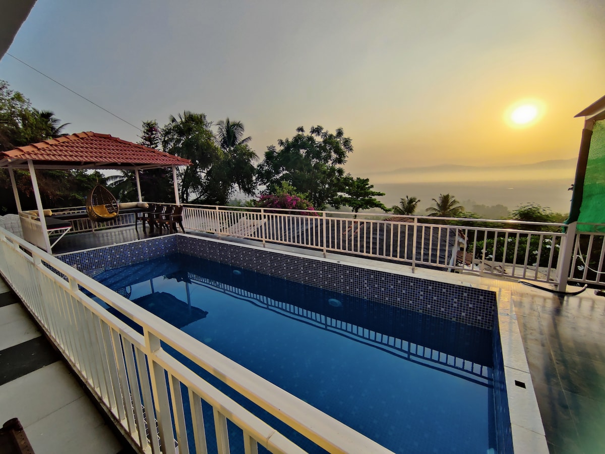 A peaceful 4 BHK private villa located just minutes from the serene Thal Beach in Alibag. Enjoy the comfort of a private pool, beautifully landscaped garden, and modern amenities and interiors — perfect for families and groups seeking a peaceful coastal getaway. The property has 2 rooms on the ground floor and 2 rooms on the first floor. It offers a stunning mountain view from the terrace, ample parking space, a cozy sit-out lawn area, and a perfectly sized pool ideal for 10 to 12 guests.