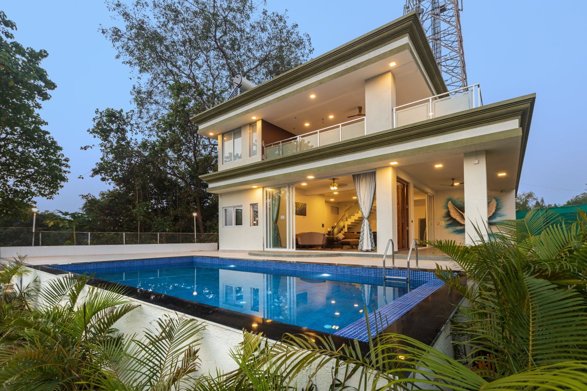 - private swimming pool (22FTx12FT) - bath tubs (2) - 800 meters from Kihim Beach - bonfire - barbecue - AC in living room and all bedrooms - badminton - carrom - spacious 4 bedrooms - lavish 4 bathrooms - king size beds with memory foam mattresses - 24X7 caretakers - ample parking - 29,000 sq ft premises - 1530 sq ft built up area - open terrace for star gazing - 11 km from Mandwa Jetty - peaceful location with bird chirping - clean, neat and well maintained - delicious food