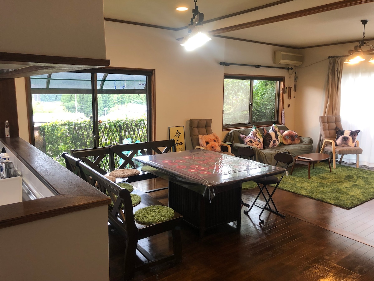 It’s a house 8km from the Hongu Taisha. (about 15 minutes' drive) If you have a car it's more convenient, but if not I'll be happy to drive you to and from a bus stop or a tourism spot in Hongu area. My family run an organic farm, bakery, NPO offering long-stay for the youth, and an alternative school for children nearby. You'll have some loaves of bread from our bakery(^^)/ (If you don't eat bread please let me know beforehand)