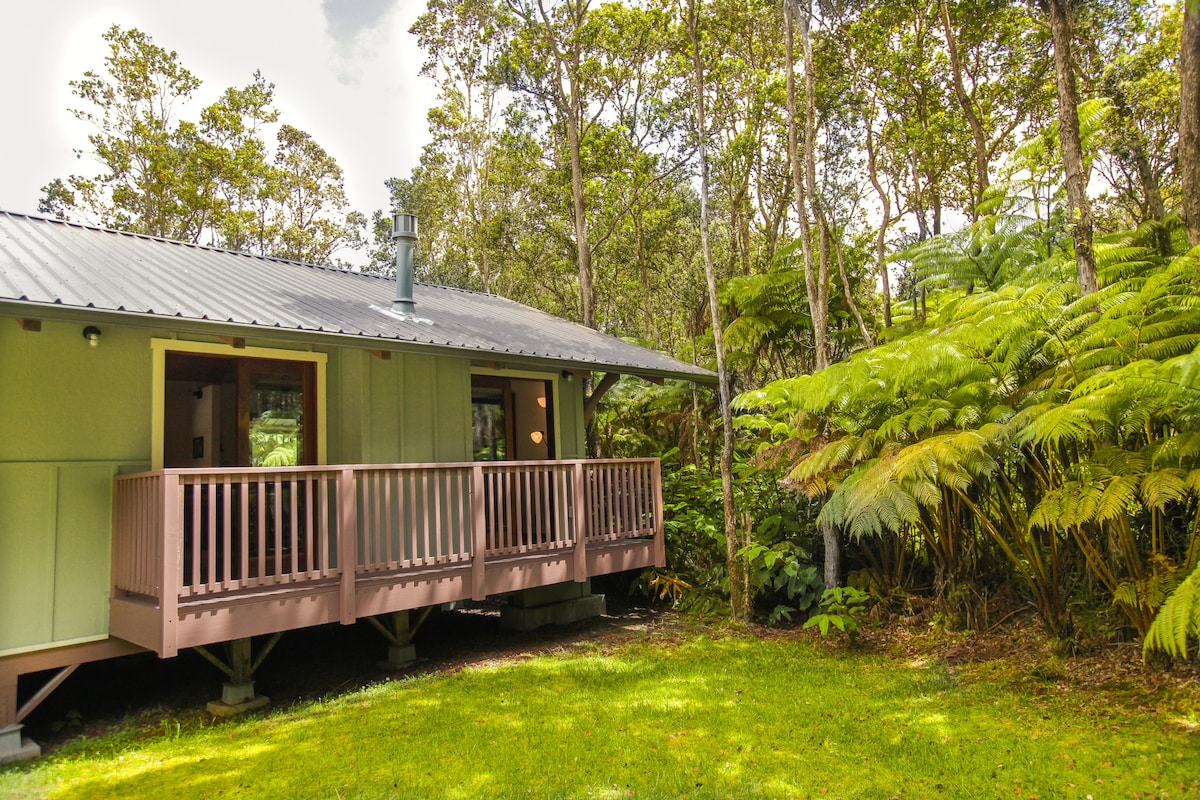YOUR PRIVATE COTTAGE AMONG THE TREE FERNS Step into a romantic rainforest sanctuary just minutes from Hawaiʻi Volcanoes National Park. Nestled among native ʻōhiʻa and hapuʻu trees, this spacious 850 sq. ft. one-bedroom cottage is perfect for nature lovers, couples, and solo travelers seeking peace and inspiration.