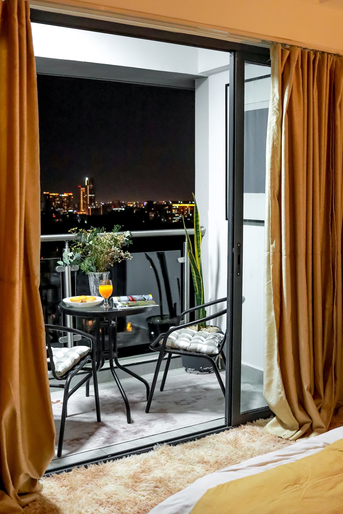 Indulge in luxury at our small 1-bedroom apartment in the heart of Kileleshwa, kilimani and westlands. Has an opulent living space with a working desk, a fully-equipped gourmet kitchen, and modern electronics . After exploring the city, retreat to your tranquil bedroom with a queen-sized bed, ensuring a peaceful night's sleep. The private balcony has stunning city views, ideal for a peaceful romantic evening and Perfect for a refined business trip back and relax in this calm, stylish space.