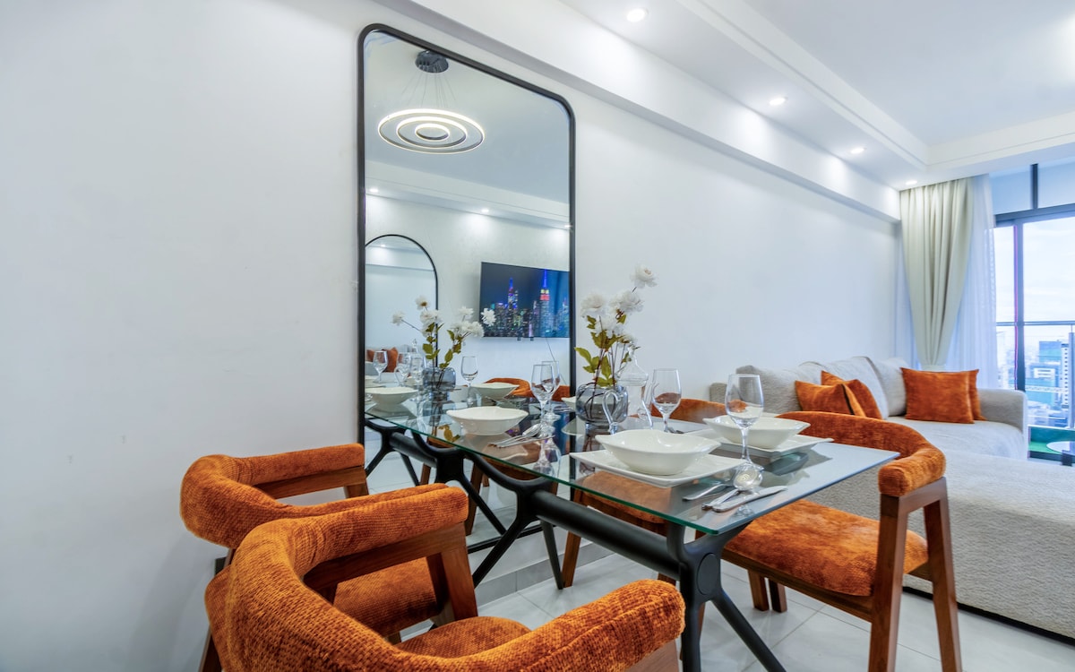 Enjoy a beautifully styled and eco-friendly 1-bedroom apartment in the heart of Westlands, Nairobi. With 100m² of space, modern art, a private balcony, Smart TV with Netflix, sound system, and a fully equipped kitchen, this apartment blends luxury and comfort. Access a rooftop heated pool, gym, sauna, squash court, and on-site café. Safe, central, and designed for relaxing or remote work. Perfect for couples or solo travelers.
