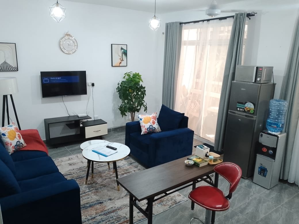 Ideal for short-term stays in the coastal city of Mombasa, Kenya 🇰🇪 The Studio apartment is designed to offer utmost serenity. You can catch a glimpse of the distant sea line through the window with a better view at the roof top. Whether on holiday or work trip or both, its conveniently located and easily accessible with ample parking. The apartment is near Kenya's 🇰🇪 premium beach hotels 🏨 in Shanzu area. Its a walking distance (500meters) to the beach ⛱️ and the blue-sky ocean 🌊