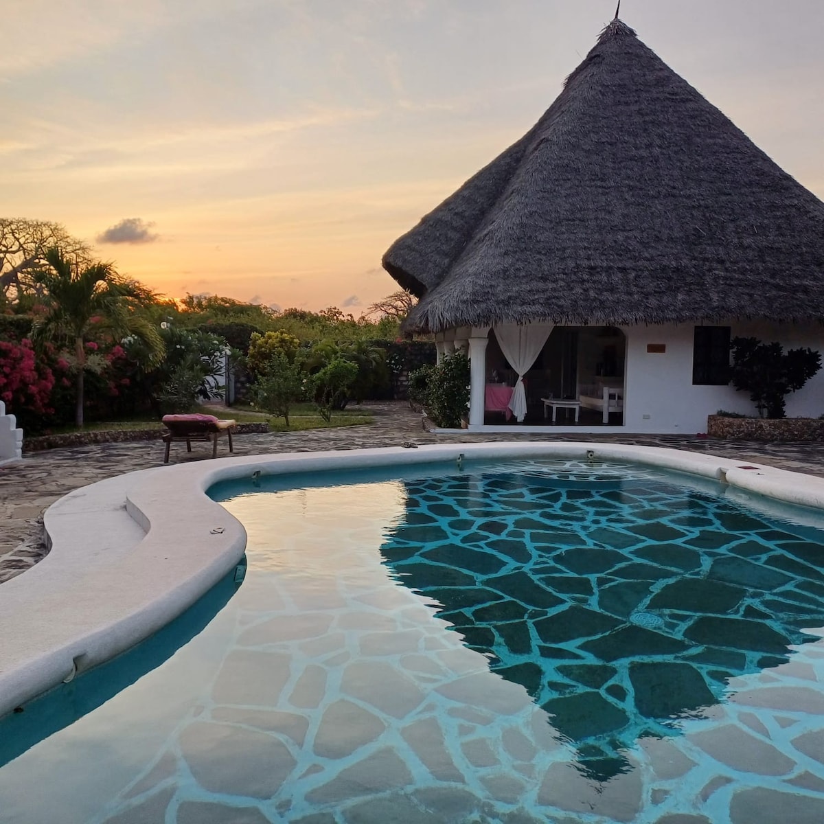 Relax with the whole family at this peaceful beach property. Our villa is 50 meters walk to the beach. We are inside a beautiful 5 acre property. Lots of space to relax and unwind as your read your book or sip your cocktail. Our swimming pool open 24 hours and is all weather. We have the most beautiful private pool in North Coast of Kenya :) In order to make your stay more comfortable, we have recently included complementary African & continental breakfast for all our guests Happy 2026 :-)