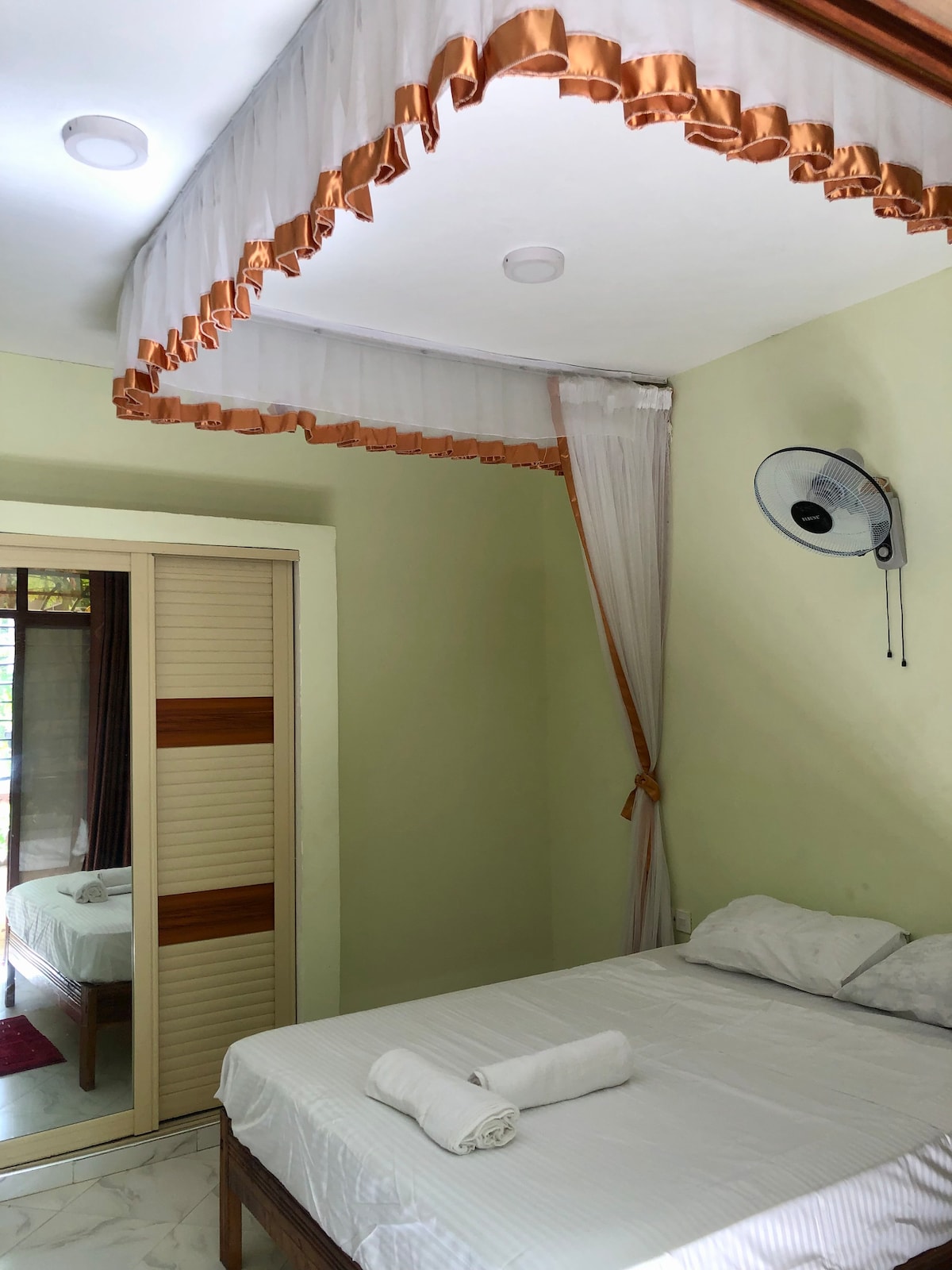 Welcome to our quiet charming private room, located just 3 mi away from the sandy shores of Shanzu beach. Haller Park is approximately 5.3 miles away, while Nyali Golf Course is 7.5 miles away. The perfect place to relax w/ restaurant located on site, air-conditioning, TV, free WiFi 🛜, and a private bathroom. Outside, you'll find a balcony w/ table and chairs. Perfect spot to enjoy a morning coffee or evening glass of wine while taking in the views. Nearest airport ✈️ Moi International Airport.
