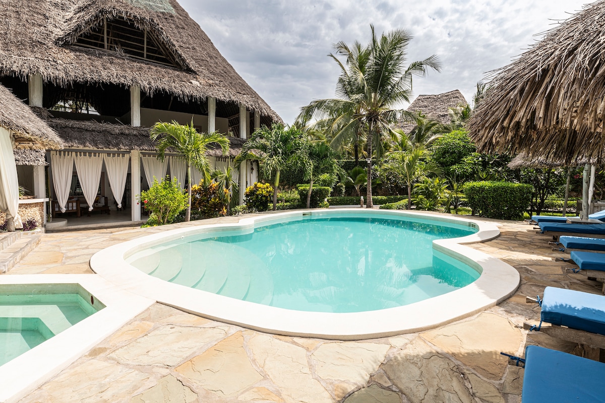 CHEF, HOUSEKEEPER, AND CLEANING SERVICE INCLUDED Exclusive villa with dedicated staff, surrounded by greenery just 400 meters from the Kenyan sea and coral reef. Spread over two floors, it features a swimming pool with a sun deck, loungers, and a gazebo for outdoor dining. 3 spacious bedrooms king-size, mosquito nets, private bathrooms, fans, and wardrobes. Fully equipped kitchen, parking, and self-sufficiency in water, electricity, and gas. Warm, professional staff ensure an unforgettable stay.