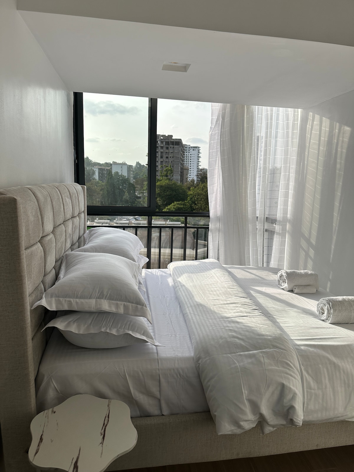This stylish place to stay is perfect for newly couples & for work travels. It’s located on the 13th floor of this new block of apartment at the heart of westlands with insane views of the city. Featuring a rooftop pool, a fitness center and a barbecue bar. Enjoy a one-of-a-kind stylish, luxury experience at this BRAND NEW, furnished 1bedroom apartment with breathtaking view from its balcony.