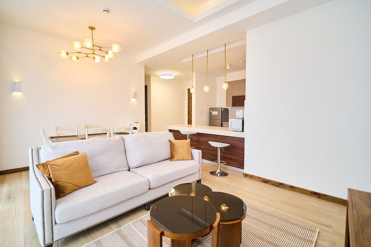 Welcome to your peaceful retreat—a spacious haven designed to help you forget your worries and fully relax. With modern furnishings, natural light, and thoughtful touches throughout, our space offers everything you need for a comfortable stay, whether you're cooking in the well-equipped kitchen, resting in the cozy bedroom, or unwinding in the serene outdoor area. Come recharge and make lasting memories in a space crafted with your comfort in mind. Note : *Gym and pool paid separately*.