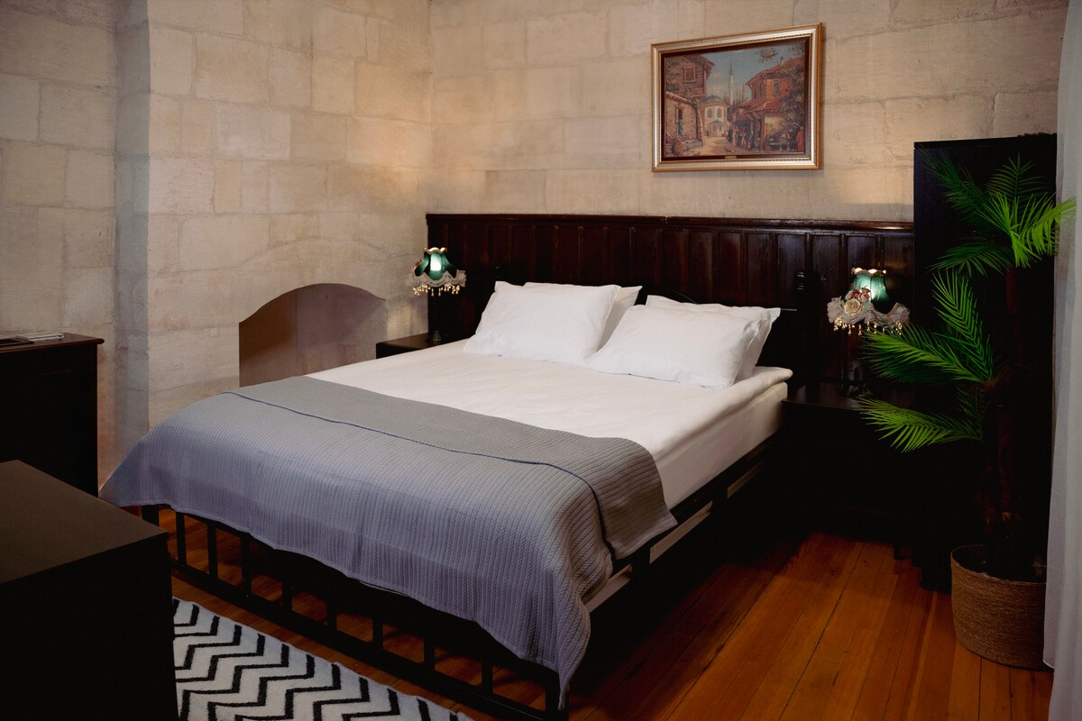 Completed restoration (Yeğinoba and Hanımevi) each with bathroom. . -24 square meters -Double bed, maximum number of people 2 -Courtyard view, high ceiling with authentic embroidery, original Aleppo plaster floor, large bathroom -First floor