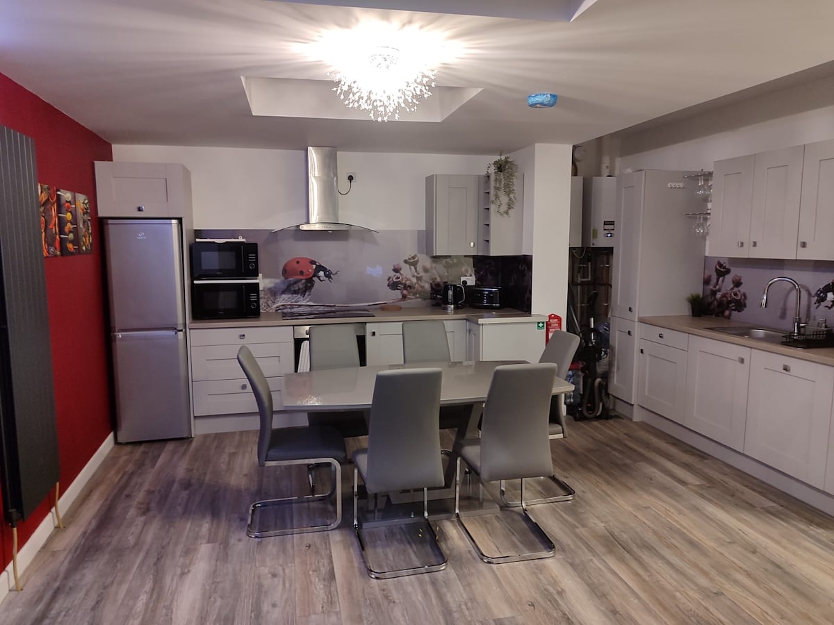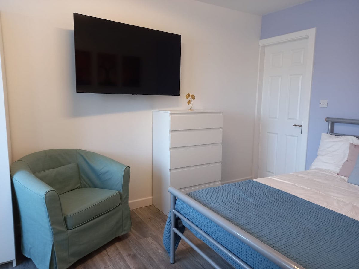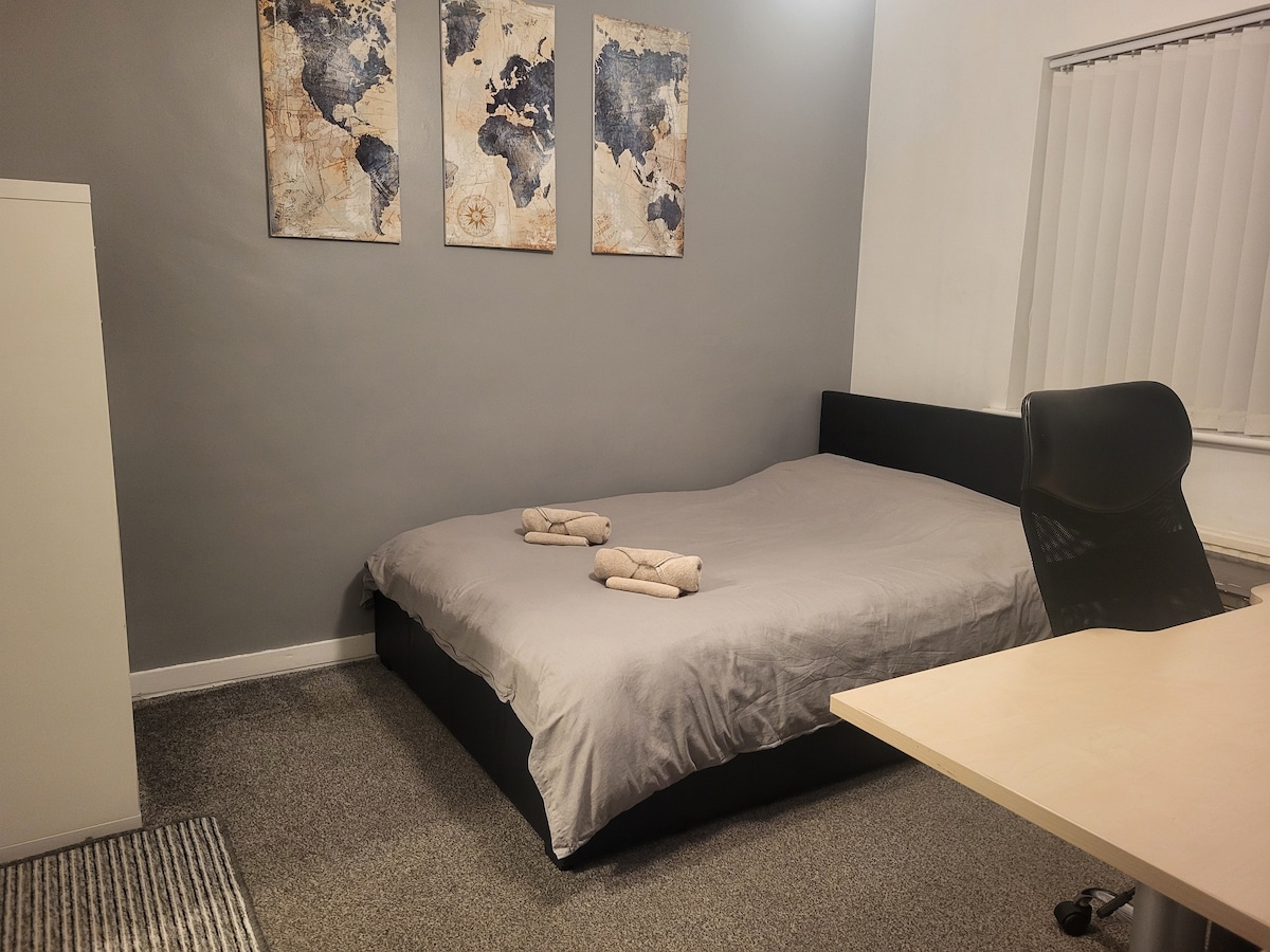 Newly refurbished bungalow, extended to offer spacious bedrooms and ensuites for each room, big open plan communal area, and big garden to the back of the property. House is equipped with free WiFi, smart TV in every room, work space and spacious wardrobes.