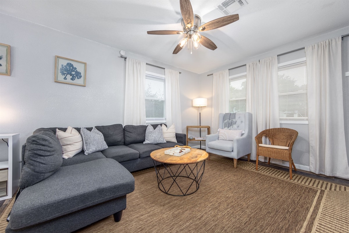 Pet friendly through 4/30/26one dog welcome (no cats). This peaceful space is designed to inspire relaxation & simple living. You’ll love the magical outdoor space, nestled beneath shady live oak trees & the convenient location just a short stroll to the beach, restaurants & local shops. Owned by a traveling yoga teacher & surfer, the home features holistic & eco-friendly touches that encourage mindfulness & easy coastal living. Work remotely with ease, or unwind & enjoy the beach like a local.