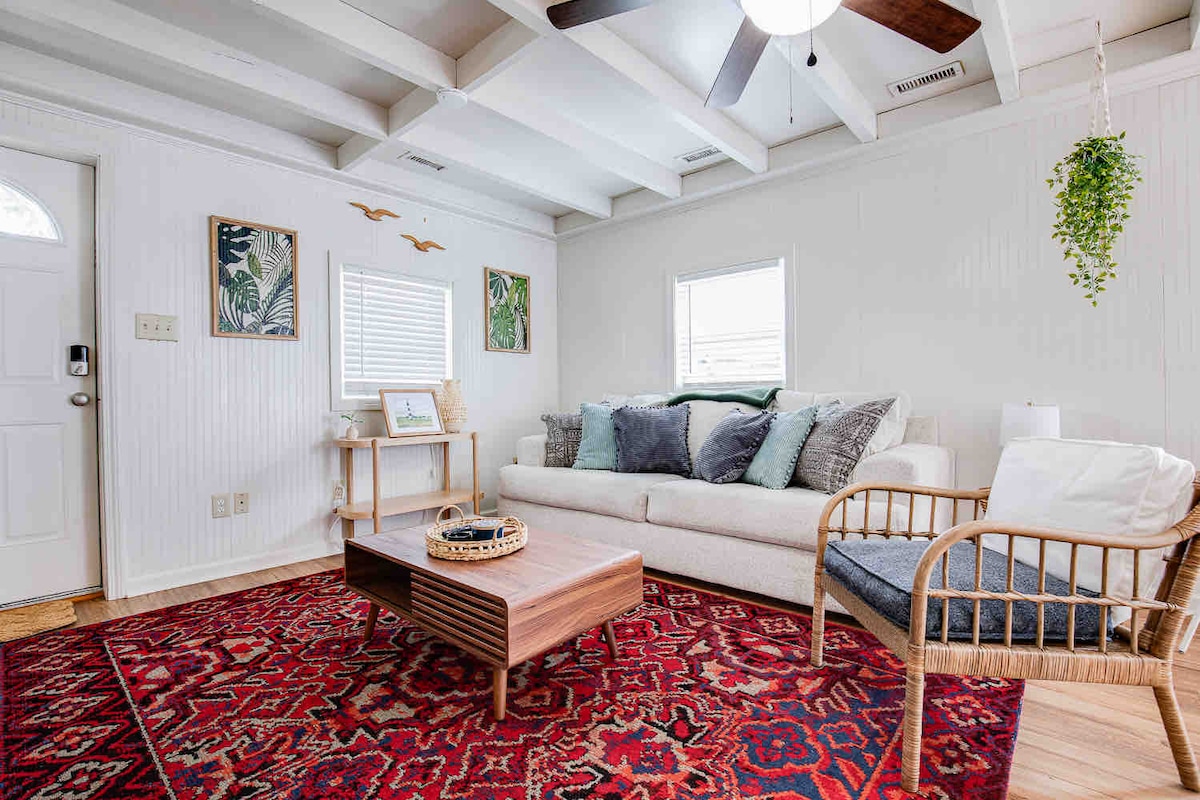 Kick back and relax in this calm, stylish space. A perfect getaway for family and friends with two bedrooms, one bathroom, a cozy living room and a chef's kitchen with two private outdoor living spaces. Relax in the outdoor tub after a day of exploring all the island has to offer. The house is situated on the West side of the highway - perfect for a sunset walk along the sound and an easy cruise to the beach or the Avalon Fishing Pier.