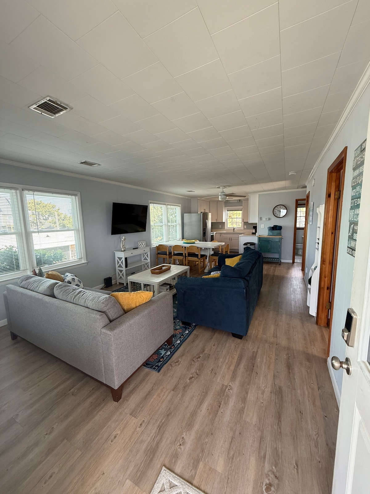 Enjoy a stylish and relaxing experience in our renovated Kill Devil Hills Bungalow! Our central location is ideal when it comes to enjoying all that the Outer Banks has to offer. We are located just a short walk, bike or drive to the beach, with plenty of public beach accesses. Just a short walk away, enjoy endless sunsets and a large trail that runs for miles along the water on Bay Drive! Around the corner in either direction are plenty of shops, dining and entertainment.