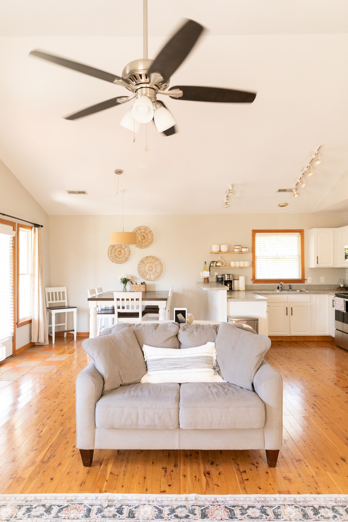 Welcome to The Dog House Surf Ranch near MP 6.5. Epitome of Country at the Beach. Walk to the Albemarle Sound and Multi-use bike path where there's a stellar sunset view every night. Open concept, 3BR 2 Full Baths (1 King, 1 Queen, 1 Twin over Full Bunk), professionally cleaned and sanitized, Large Fenced Yard, Outdoor Shower, 3-Decks including a Crowe's Nest, Fire Pit, Cornhole, Smart TV in every Room w/Wifi. Near grocery stores, restaurants, 3 minute drive to beach, movie theatre and more.