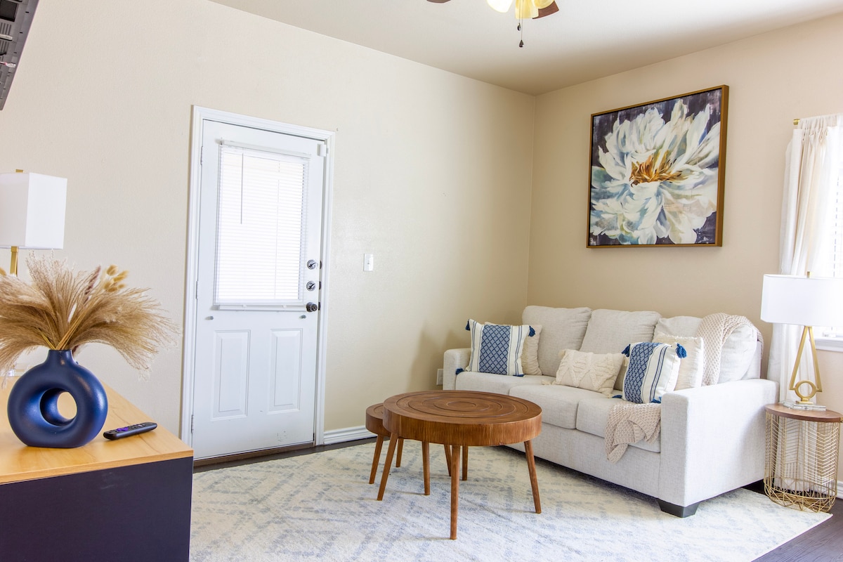 Welcome to our bright & cozy boho chic 2 bedroom home where you can unplug from the worries of life. You'll love the abundant sunlight that fills every room, creating a warm & inviting atmosphere. Whether you're visiting Fort Cavazos, , or the nearby campuses of Central Texas College or Texas A&M, or just looking to explore the local area, our home is in a great location. We're just a short drive from restaurants, shops, other attractions and the Killeen Airport. Message me with questions!