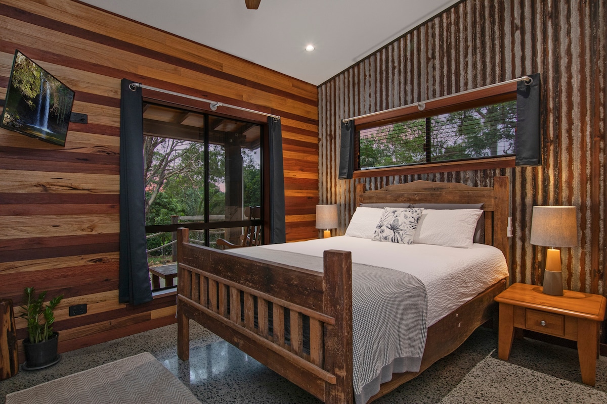 Escape to Creekside Cabin- a brand new luxurious, tranquil cabin tucked away in the Byron Hinterlands. Nestled on a free-flowing creek- you’ll hear the sounds of cascading water as birdsong surrounds. Perfect for romantic weekends and quiet getaways yet only 20 minutes minutes to Byron, 15 minutes to Lennox, 7 minutes to the famous Newrybar cafe Harvest and 2 minutes to Killen Waterfalls. The cabin is equipped with a full kitchen + king-sized bed + every amenity for a comfortable stay.