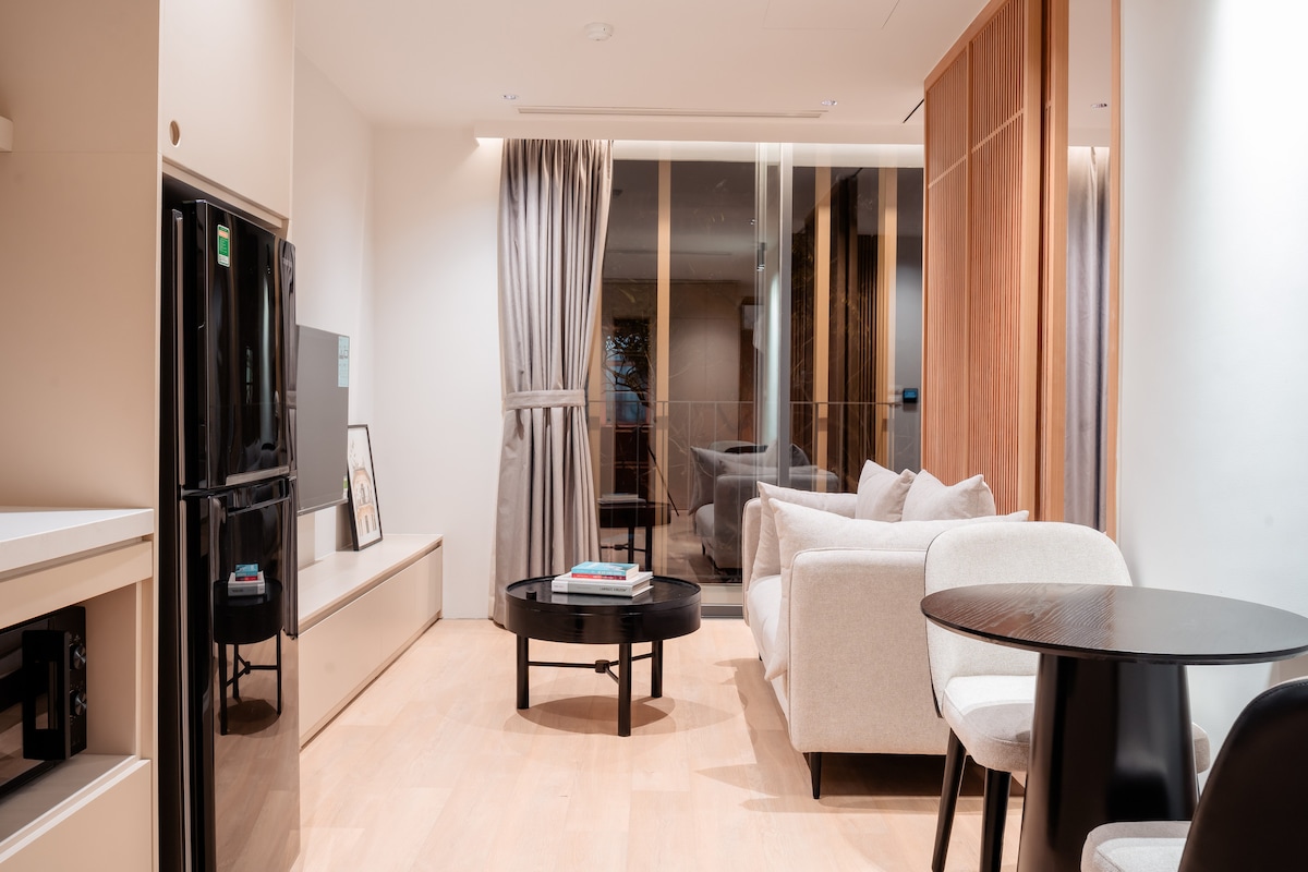 The apartment just opened in June 2025. It is meticulously designed in a mid-century style blended with Vietnamese cultural elements. Most importantly, it’s located right in Hoan Kiem District—just a 5-minute walk to the famous Train Street coffee check-in spot and another 5 minutes to Hanoi’s Old Quarter. Enjoy a stylish experience at this centrally-located place.