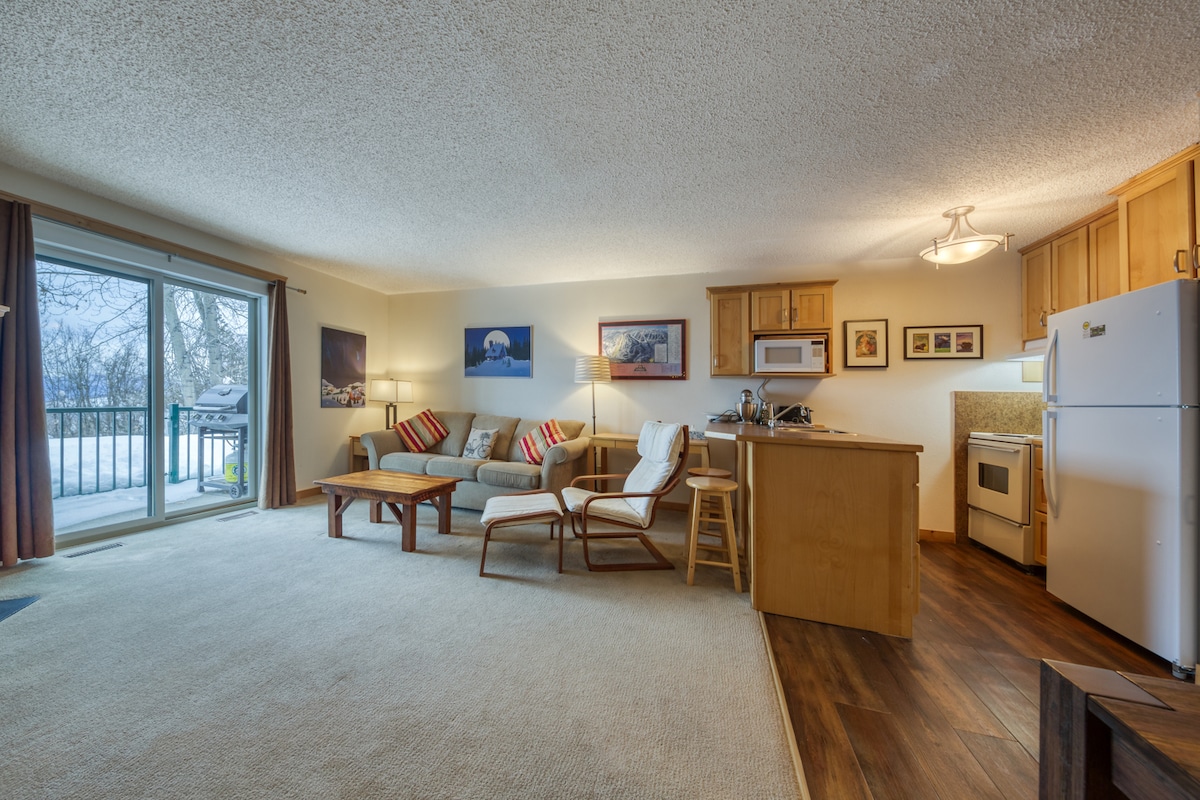 Quaint little condo on the ski hill in the village of Kimberley, British Columbia. Hop skip and jump to all your outdoor activities . Ski trails, both down hill and cross country. Many snow shoeing back country trails. Mountain biking and hiking trails at Nordic Trails just out side your door. Outdoor pool (seasonal) and indoor sauna! Surrounded by many top rated golf courses! So much to do for the outdoor adventurer. ENJOY