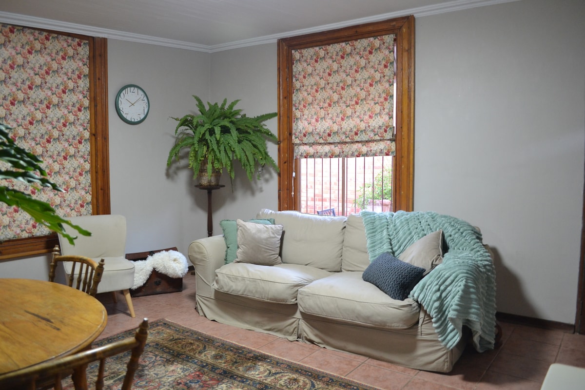 My place is close to all of Kimberley's amenities, tourist attractions and businesses. You’ll love my place because of the high quality furnishings, private rooms, tranquil gardens and secure parking. My place is good for couples, solo adventurers, business travelers, and families. DSTV Hotel Bouquet. Free WiFi. All linen & towels provided. Beverage-making facilities. Microwave. Secure parking. Gardens with braai area.