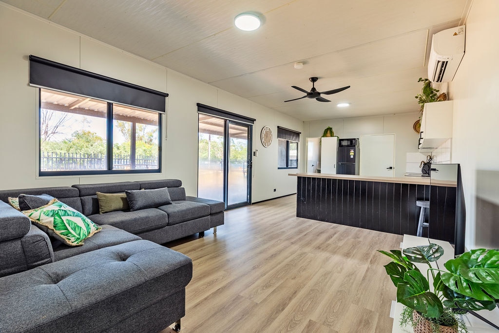 Welcome to our secluded bungalow located just 5km from Kununurra town centre, yet you feel like you're 1000 miles away, surrounded by native trees , wallabies and birds. Everything you need to make yourself feel at home is provided. Inside your airconditioned hideaway is a kitchenette and luxurious bathroom. Outside is a fully equipped kitchen with an air fryer, hot plates, barbecue and even a slow cooker.You will have your own undercover parking and laundy facilities.