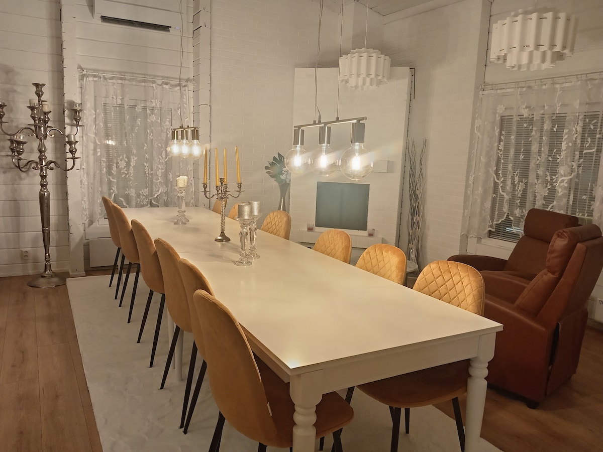 Villa Muurla is perfect place to host family / business gatherings. There are 5 +1 bedrooms, huge living room + dining area and big outdoor terrace. Villa has kitchen and gas grill on terrace. There are also 2 bathrooms + one sauna. There is air conditioning and Villa is newer hot and 2 fire places to keep it warm in winter times. There are 12 beds with linen supplied by the host. During cristmas times we welcome businesses to have their small Christmas party at Villa Muurla.