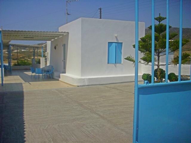 Bienvenue en Grèce, dans ma maison ! C’est une maison familiale, typiquement cycladique. Elle a appartenu à mes grand-parents et j’ai essayé d’en garder l’esprit, tout en l’adaptant aux exigences de la vie d’aujourd’hui . Une maison de village, accessible par un charmant escalier, elle est totalement protégée des bruits de la route. Exposée plein sud, (très important, car à l’abri du meltemi, vent du nord qui souffle en rafale tout l’été) , elle surplombe Klima, un pittoresque village de pêcheurs ( à 20mn à pied et 3mn en voiture) et toute la baie intérieure. Environnement très calme de grecs qui vivent là toute l’année et qu’il faut respecter. Des terrasses où prendre son petit déjeuner, et profiter des couchers du soleil incendiaires. A l’intérieur une première grande pièce commune, cuisine, salon avec un petit canapé, une salle de douche et WC, une belle chambre avec son « doulapi » (placard ) inclus dans le mur. Les plafonds sont restés traditionnels, poutres et kalami récemment blanchis à la chaux et dont la vertu est de protéger du bruit et de la chaleur, mais ni des moustiques, araignées et insectes qui peuvent nous rendre visite en dépit des soins constants apportés à la propreté de la maison ! Malgré tout, même si nous sommes tout près de la mer, nous sommes aussi dans la campagne grecque, celle des oliviers, des cyprès, et d’une flore typiquement cycladique; du chant des cigales et des grillons, la nuit tombée. Avec au loin, les clochettes des moutons et le braiment d’un âne. Ce qui rendra votre séjour dépaysant et je l'espère unique !