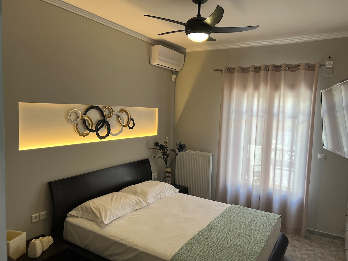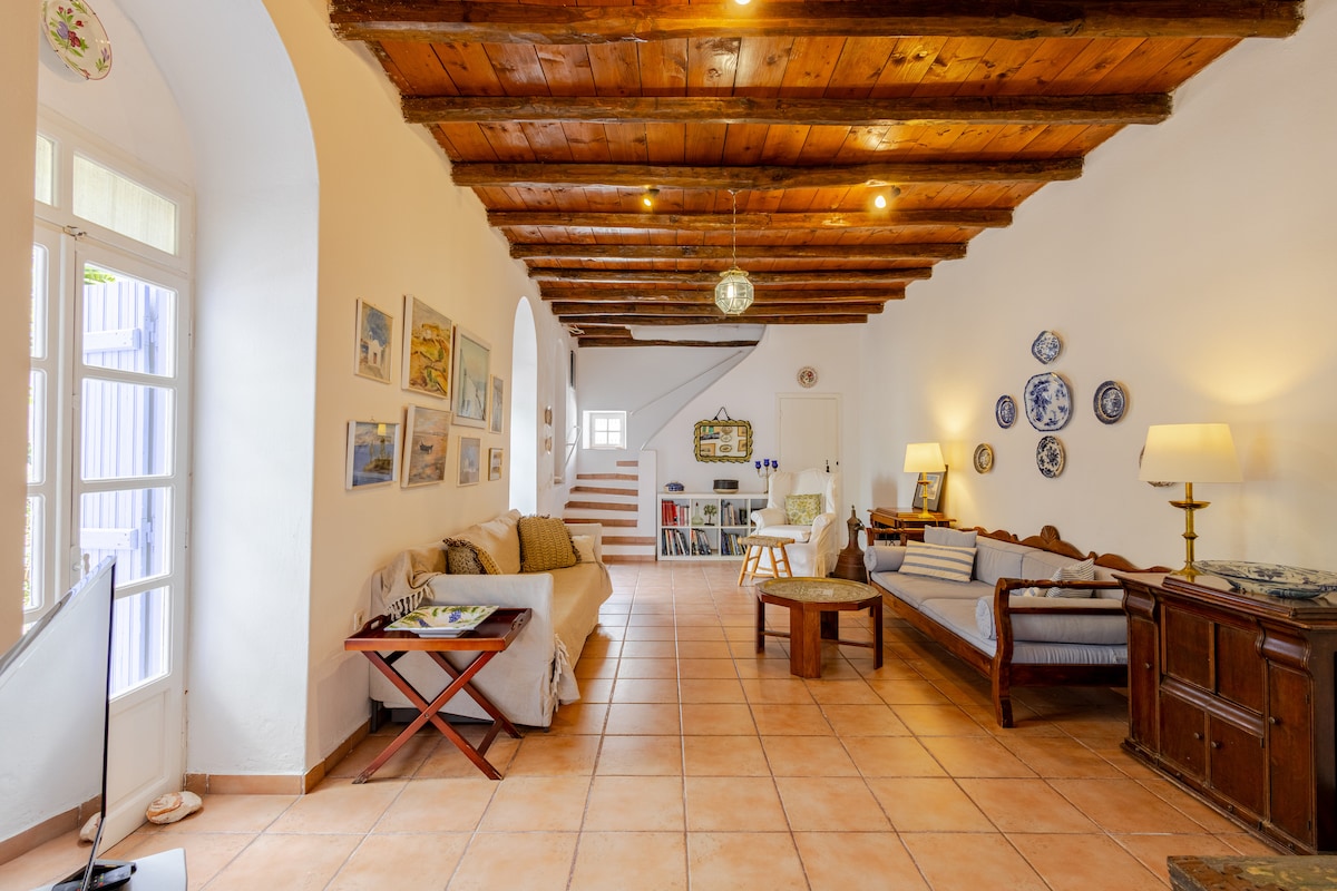 Renovated 100 sq.m. apartment in a panoramic location, blending traditional charm with modern comfort. It features two-level verandas for relaxing or sunbathing in complete privacy.The interior includes wall-mounted air conditioning units for perfect climate control,a fully equipped kitchen with Teka and Bosch appliances, a spacious living room with a 55’’ smart TV and fireplace. 2 bedrooms,1 bathroom and laundry area.Ideal for peaceful holidays with total privacy and unobstructed village views.