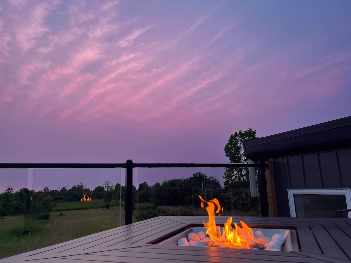 在A型房屋欣赏休伦湖日落 | 雪松热水浴缸