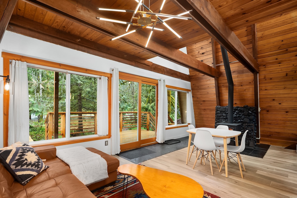 Welcome to Wild Dog Cabin! Forrest spa-like oasis only 25 minutes to Steven's Pass. Exceptional style, dog friendly with luxury, contemporary finishes. Located in Baring, next to the Skykomish River with private community beach access! Unwind in "The Cedar Room" our Finlandia cedar sauna or dip into the 7 person hot tub covered by a stunning gazebo with lights. Completely remodeled, while maintaining cabin charm. Recharge in this calming space also known as #TheSelfCareCabin.
