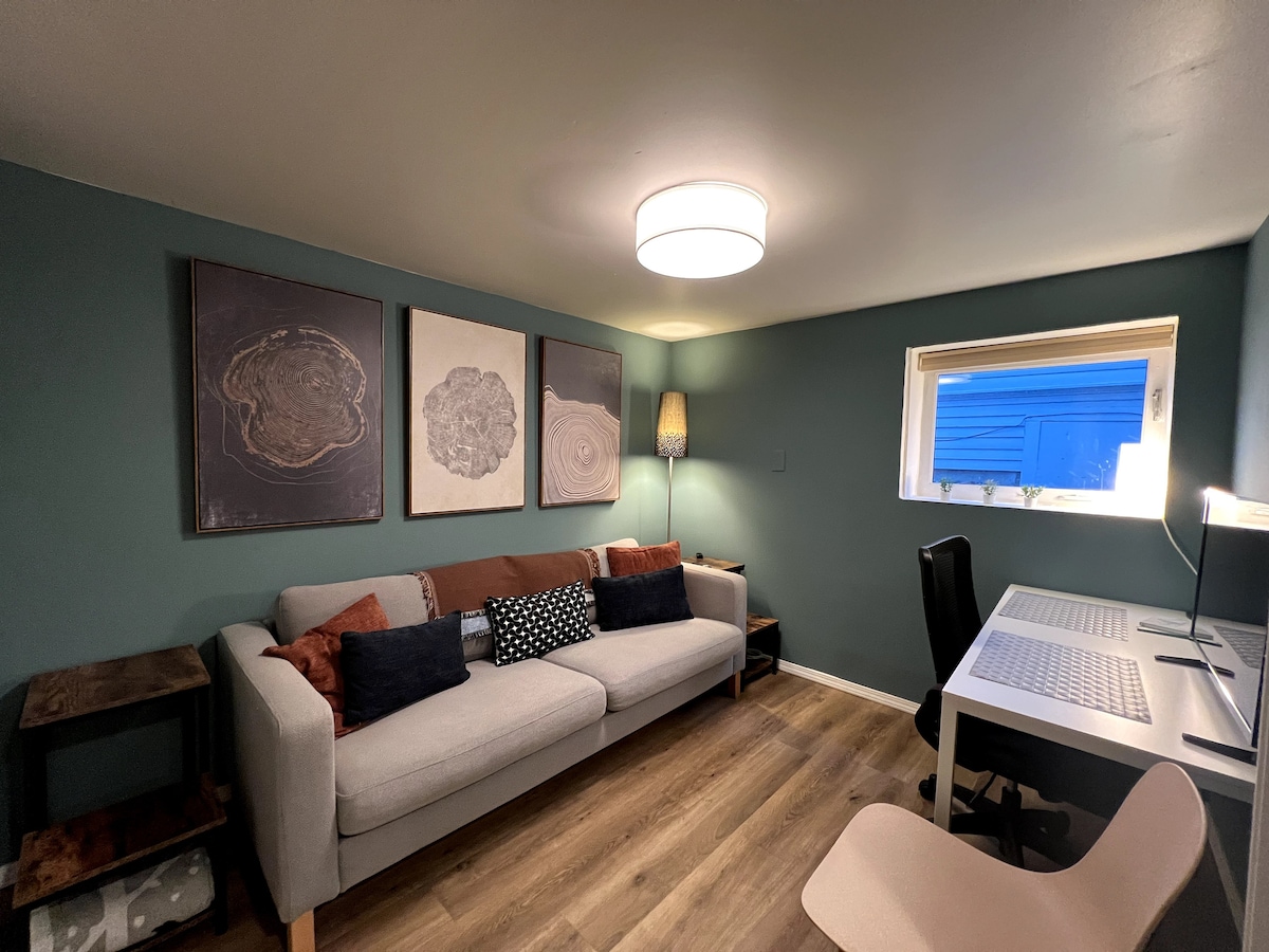 Private parking steps from entrance. A beautiful, light-filled, newly constructed modern abode two blocks from Green Lake. A nordic-inspired cabin, tastefully furnished with modern classics; primely located between downtown, the UW & Fremont neighborhoods. Private entrance, reserved parking, 24-hr keyless entry, private garden patio area with full amenities. Easy transit, I-5 access. Please note this property has an Airbnb exemption from hosting service animals or emotional support animals.
