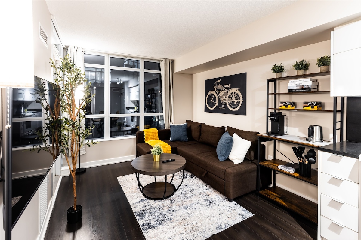 STR-2307-HDGHHW Welcome to Toronto! Enjoy a cozy 1-bedroom suite in vibrant Liberty Village. With free parking, it's perfect for solo travelers or couples. Explore nearby restaurants, bars, and shops, or take a short walk to the Entertainment District for more fun. Relax in comfort in this thoughtfully designed space. Can't wait to host you and make your Toronto stay memorable!