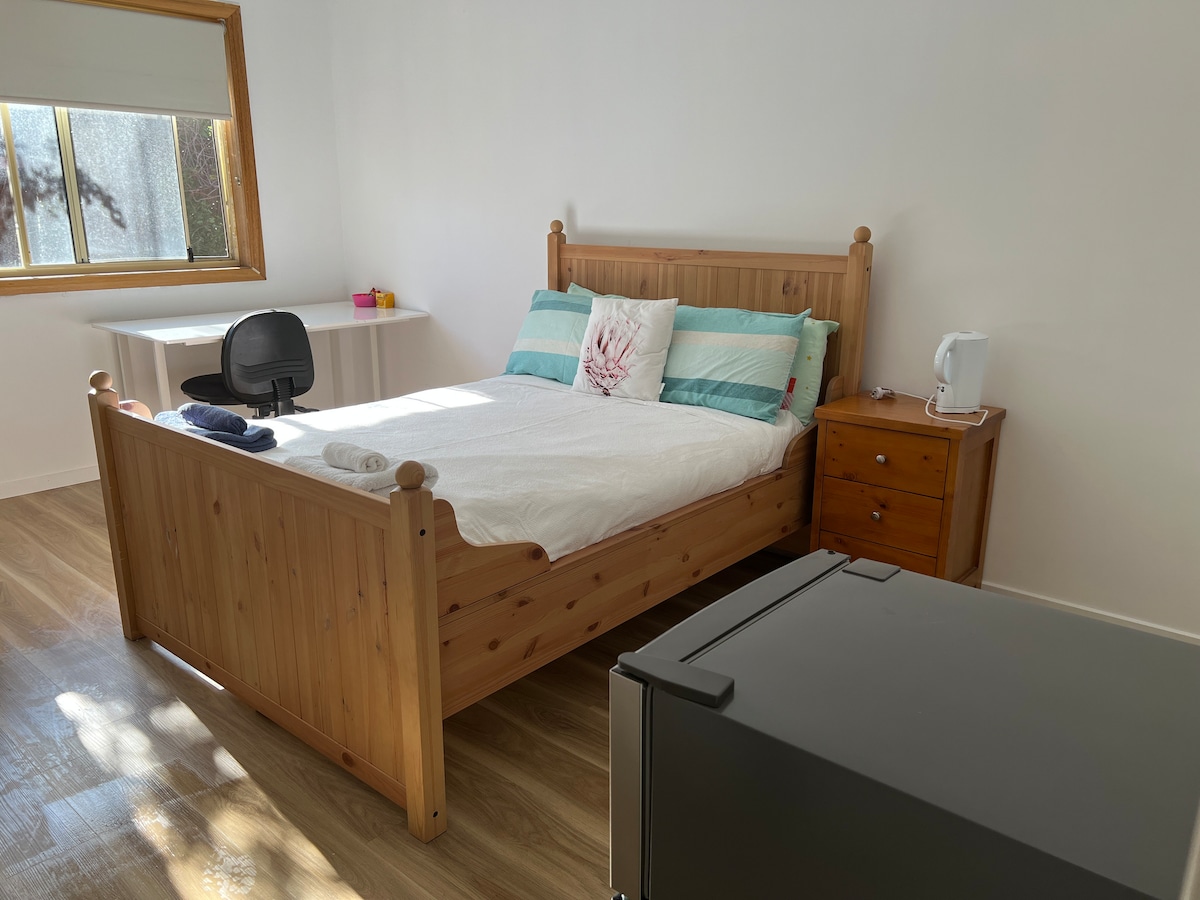 Tucked away in Sandy Bay, The Studio is snug, fully self-contained and just 2.5kms from the city’s CBD and famous Salamanca Market. It's the perfect base for visiting Hobart. Dine alfresco in the leafy private courtyard, or choose from many fine dining and café options just short walks away. Snuggle up in the king-size bed with a Netflix movie. In the morning, walk a beautiful beach located just minutes away. The all hours self check-in takes the stress out of arriving late.