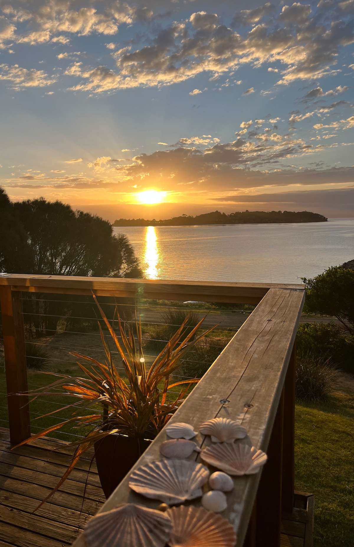 Our beach house is situated directly across the road from the white sands of Adventure Bay. You will experience the most spectacular sunrises, looking out across Storm Bay and onto Tasman Island. Guests will lay in bed at night, where the only sound is the waves breaking on the beach below. Quiet Corner is a safe swimming beach (perfect for kids) and we have a local shop, all within a minute's walk from our front gate. This is a top floor, self contained apartment requiring stairs to access.
