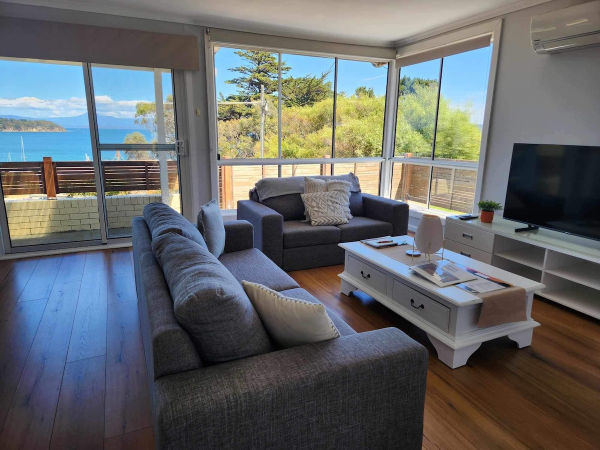 This private guest suite is on the ground floor of my waterfront home. With views across the garden to Bruny Island and a direct path leading to a sandy beach, this is a quiet Haven. The suite includes; a large bedroom, king bed, private entrances, garden deck, contemporary bathroom, and a kitchenette. The location is the stunning South Arm Peninsula offering many coastal trails, beaches, and a key site for viewing the Aurora Australis. Easy access to Hobart (40mins) and the Airport (30ms).